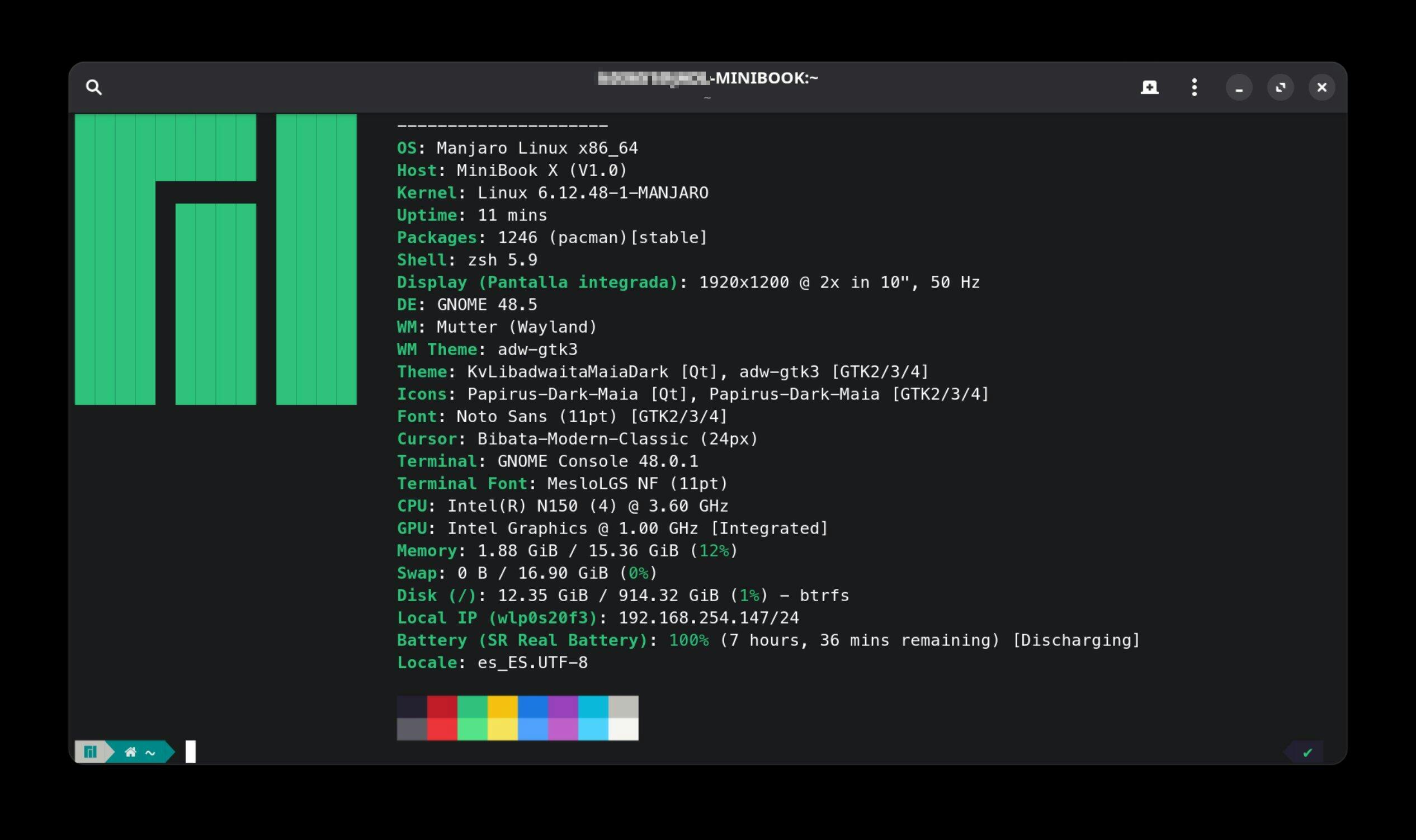 El MiniBook X tiene un sistema de enfriamiento con un gran turboventilador, con soplado de aire lateral de gran volumen y control de velocidad inteligente. El ventilador arranca y se detiene automáticamente según la temperatura. Garantiza la máxima eficiencia de enfriamiento y una administración de energía más eficiente.